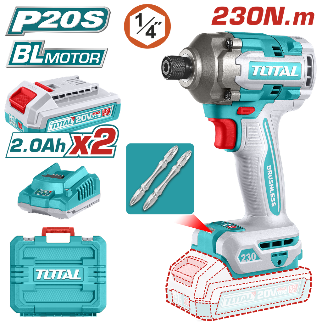 ATORNILLADOR DE IMPACTO INALAMBRICO 1/4 20V 230NM INCLUYE 2 BATERIAS, 2 PUNTA TALADRO INDUSTRIA SUPER TOTAL (UTIRLI2023)
