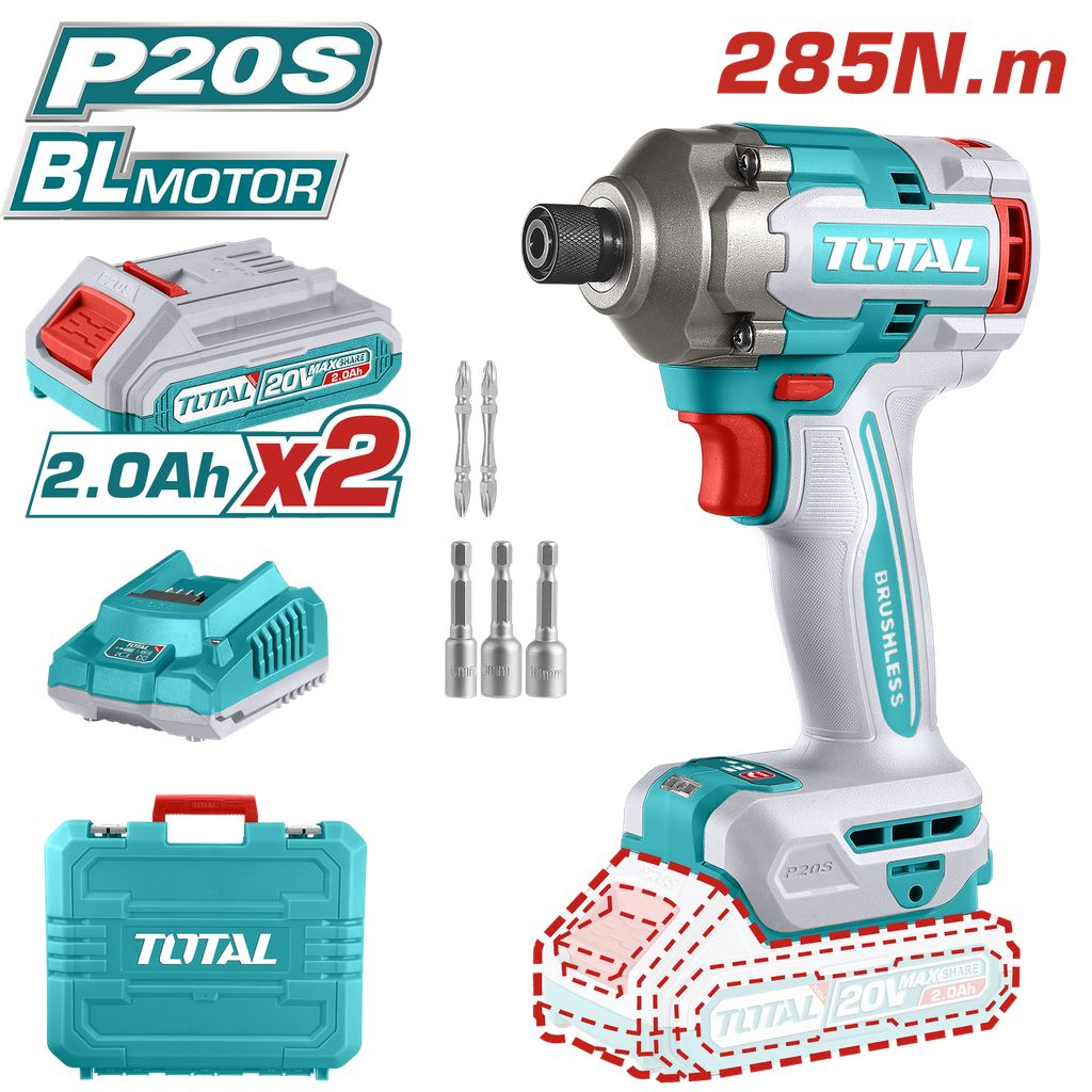 ATORNILLADOR DE IMPACTO INALAMBRICO 1/4 20V INCLUYE 2 BATERIAS, CARGADOR Y 5 ACCESORIOS CAJA PLASTICA INDUSTRIAL SUPER TOTAL (UTIRLI2028)