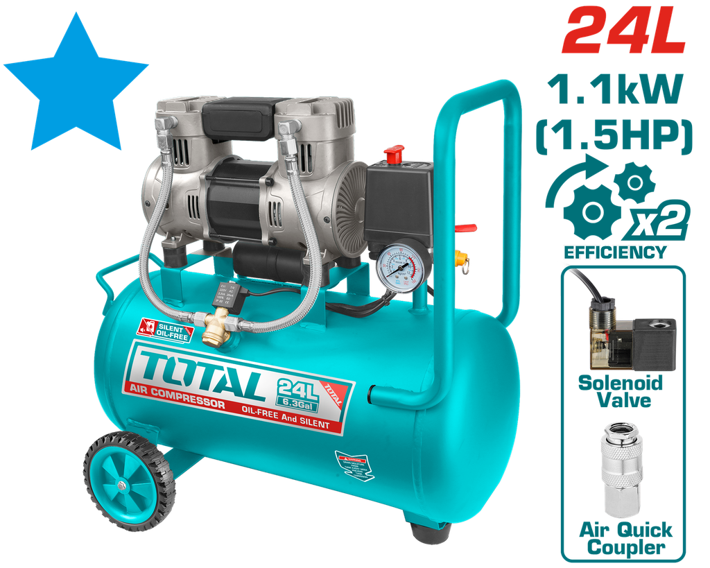 COMPRESOR AIRE HORIZONTAL 24L 1.5HP 116PSI 110-120V 1100W 60HZ SUPER TOTAL (UTCS1110242)