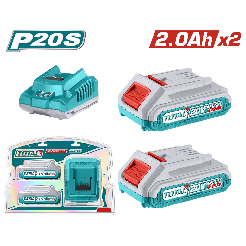 KIT DE 2 BATERIAS 2,0AH + CARGADOR DE 20V INDUSTRIAL TOTAL (UTFBCPK1222)